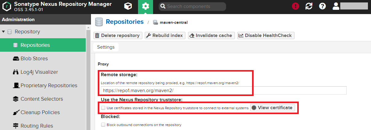 Nexus의 maven-central은 maven 공식 저장소의 라이브러리들을 중계하는 역할을 담당한다.