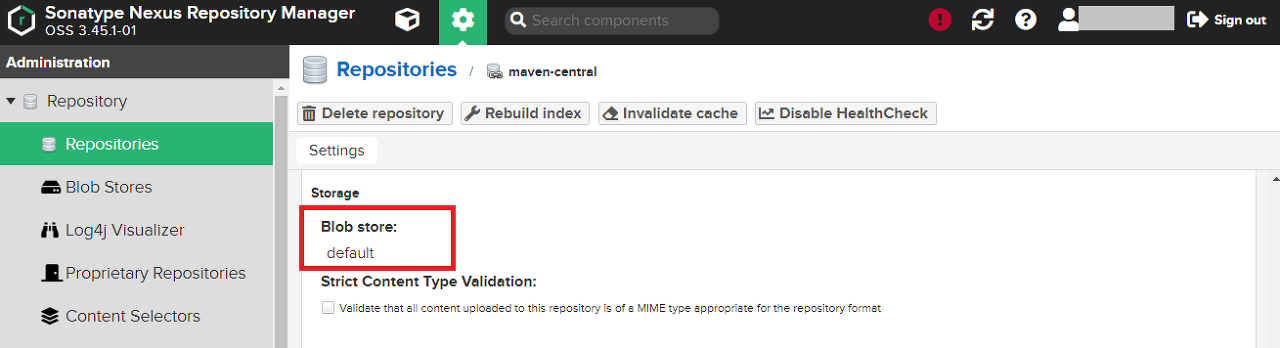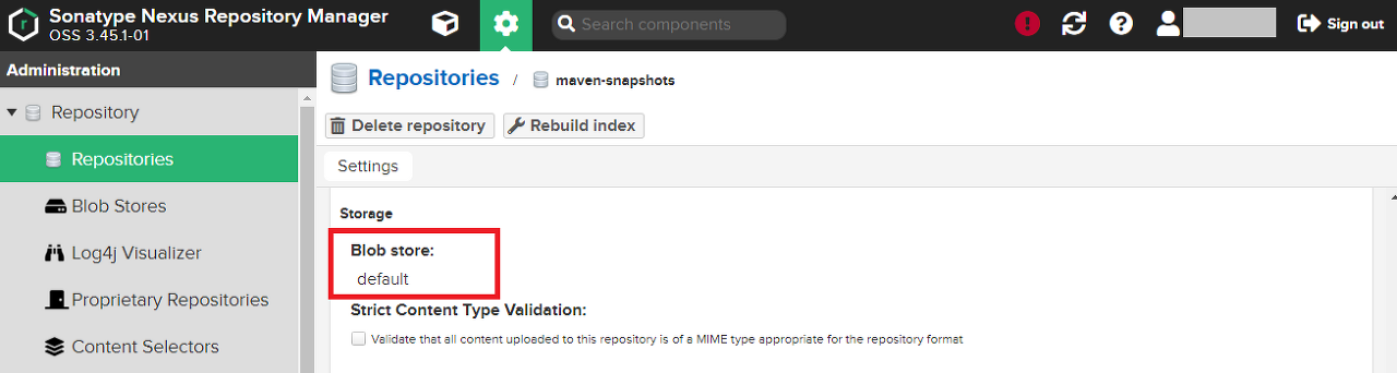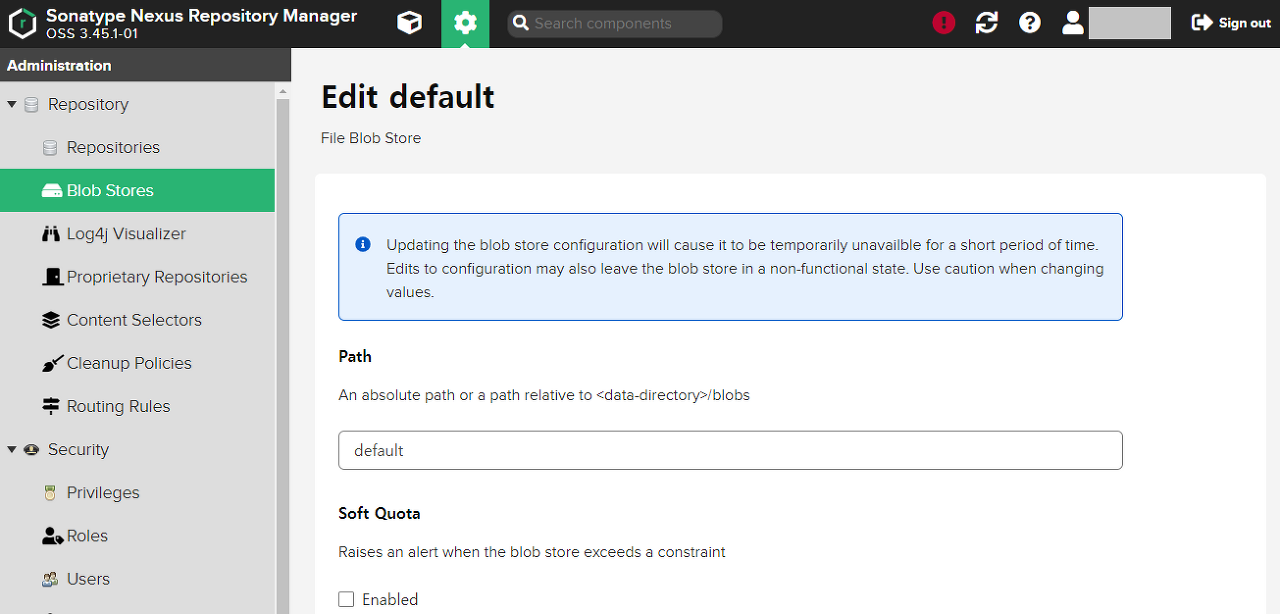 Blob Store의 default 저장소는 기본으로 제공되는 maven-public, maven-central, maven-releases, maven-snapshots만 사용한다.