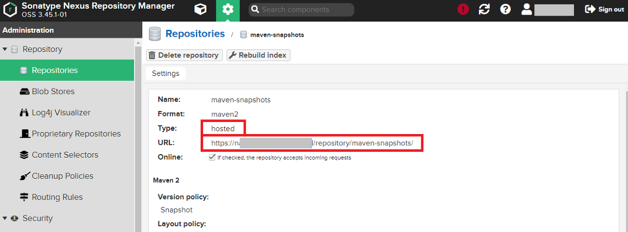 또한 hosted 저장소이므로 내부에서 배포하는 패키지를 저장하는 저장소이다.