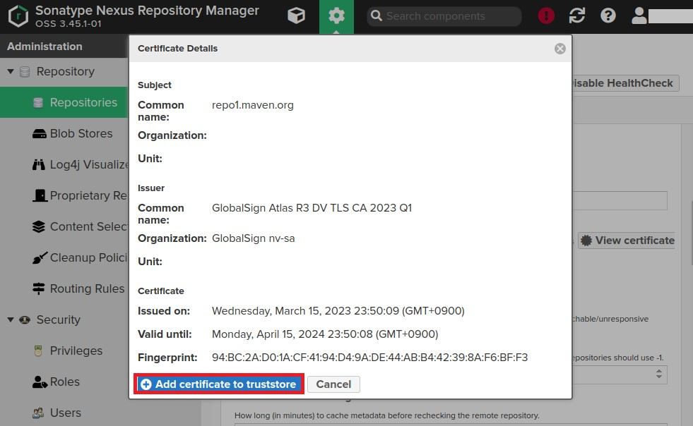 | Maven 저장소에 사용할 Nexus 서버의 자체 서명 인증서 교체 (36) | 2023.07.13 |