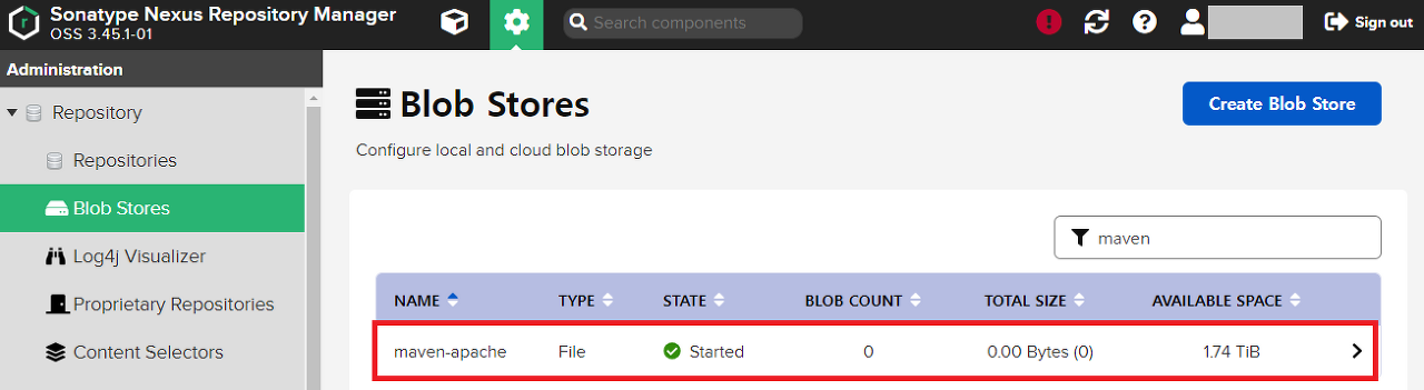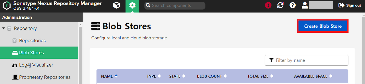 Create Blob Store를 클릭한다.