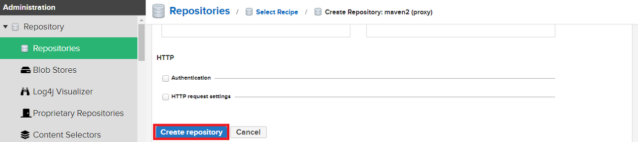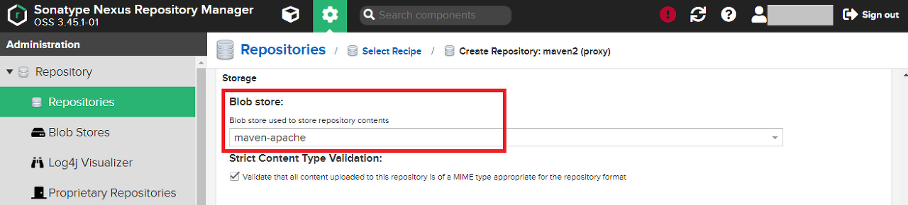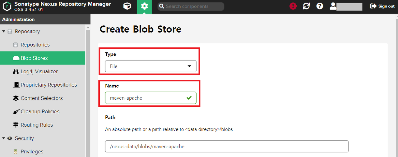 Blob store에서는 생성한 maven-apache를 선택한다.