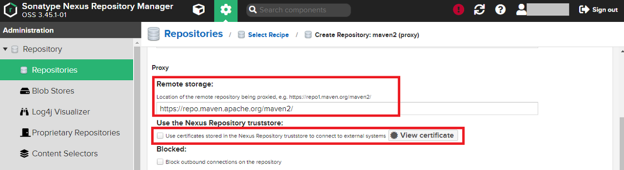 다른 3rd-party Maven 저장소를 추가할 때, Remote storage에 해당 저장소 주소를 입력하면 된다.