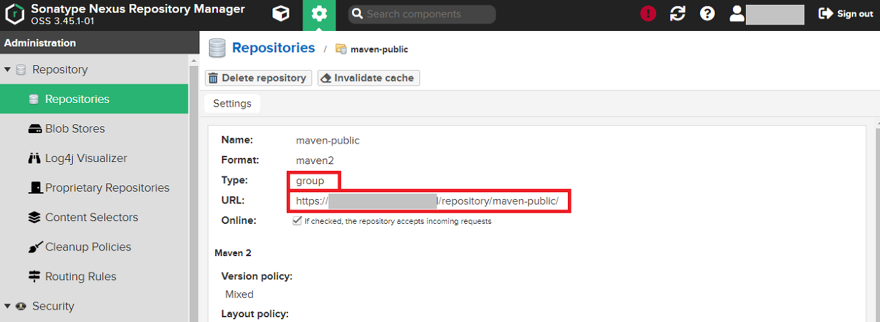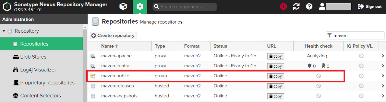 Nexus에서 확인되는 maven-public은 group 형식의 저장소이다.