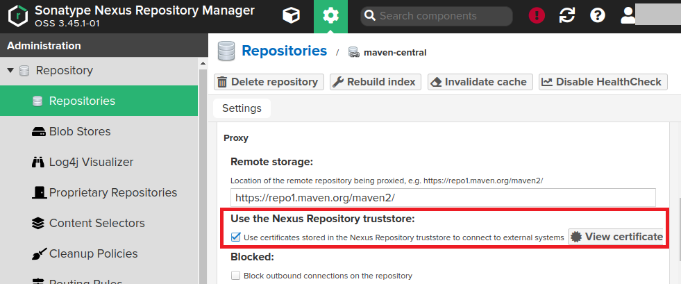 Nexus의 maven-central은 maven 공식 저장소의 라이브러리들을 중계하는 역할을 담당한다.