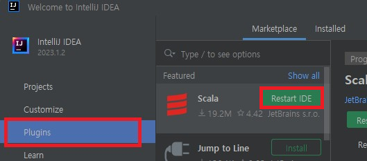 설치가 완료되면 Restart IDE를 클릭해서 IntelliJ를 재시작한다.