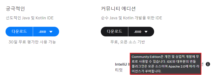 스크롤을 조금 내리면 Community Edition 다운로드 링크가 확인된다.