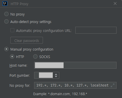 Manual proxy configuration 체크