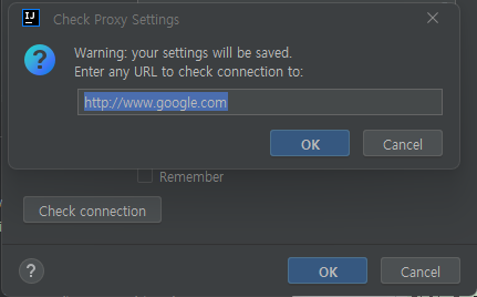 Check connection 버튼을 클릭하고 외부 사이트 주소를 입력한 다음 OK 버튼을 클릭한다.