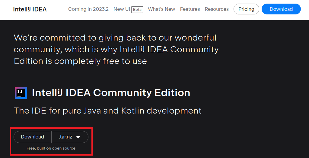 $ wget https://download.jetbrains.com/idea/ideaIC-2023.1.3.tar.gz