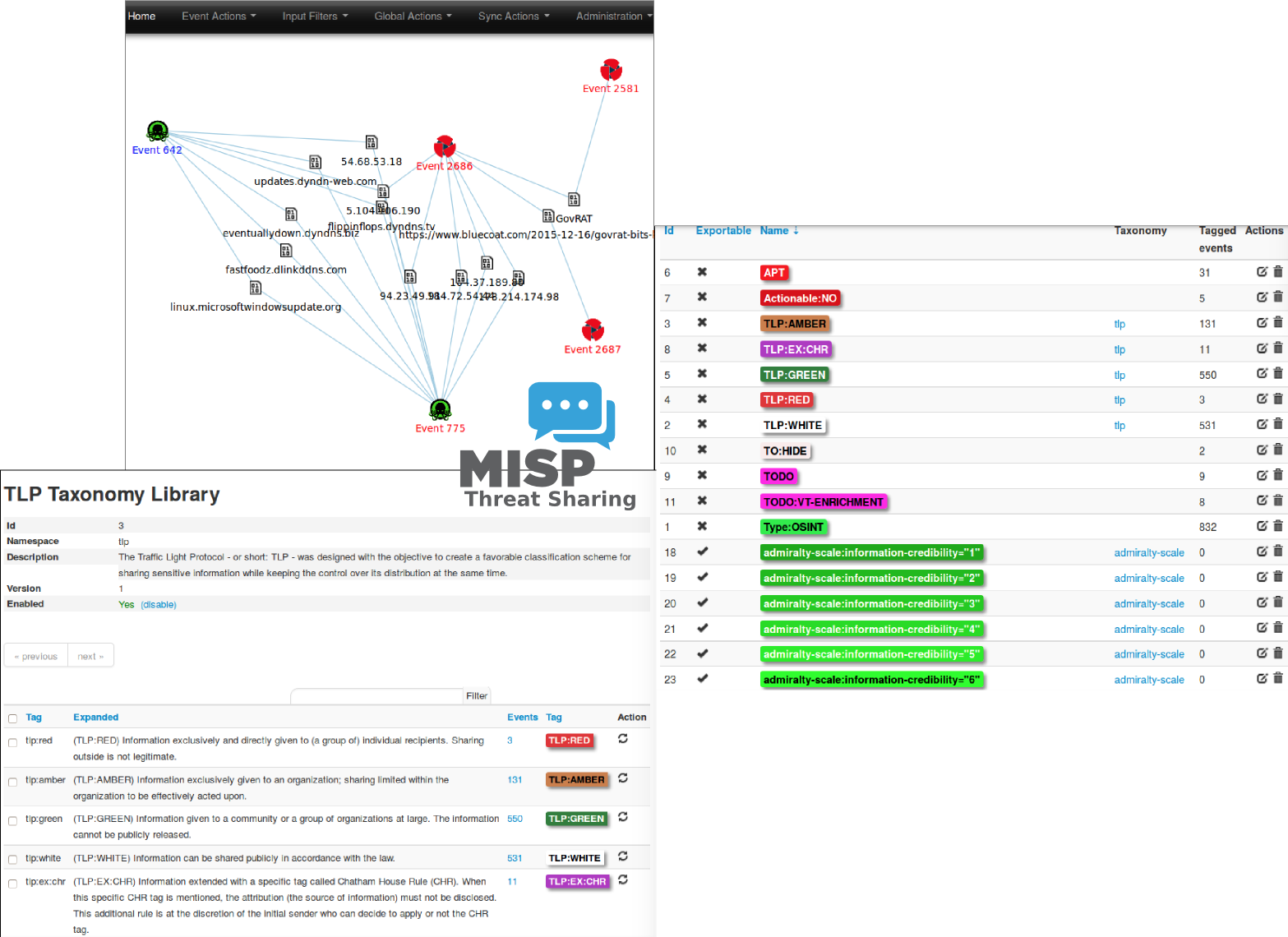 - 공유 된 지표와 속성의 강조 기능 제공 (MISP UI, MISP 문서와 STIX의 API)