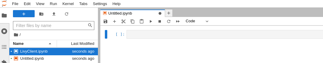 파일명 탭 우클릭하고 Rename Notebook을 선택하거나 또는 Ctrl + Shift + S를 입력하고 LivyClient.ipynb로 변경한다.