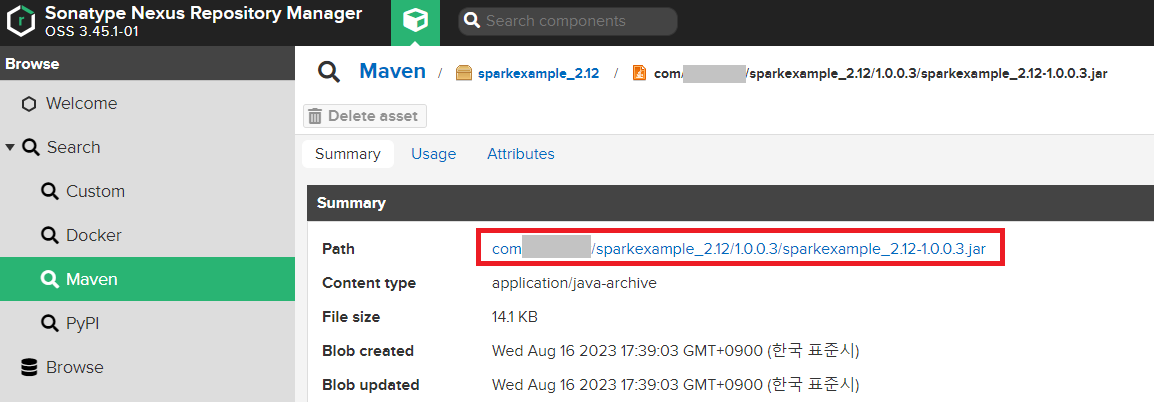 Nexus에 배포 된 sparkexample의 Jar 파일을 다운로드한다.
