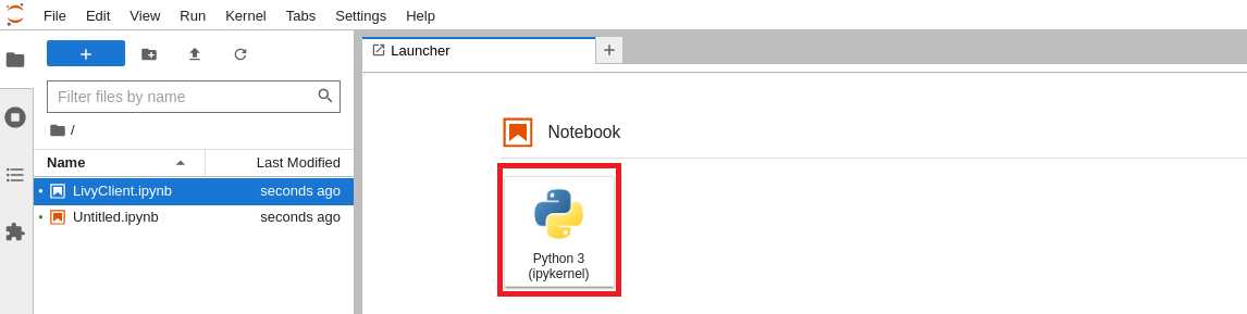 Notebook 탭의 Python 3 (ipykernel) 버튼을 클릭한다.