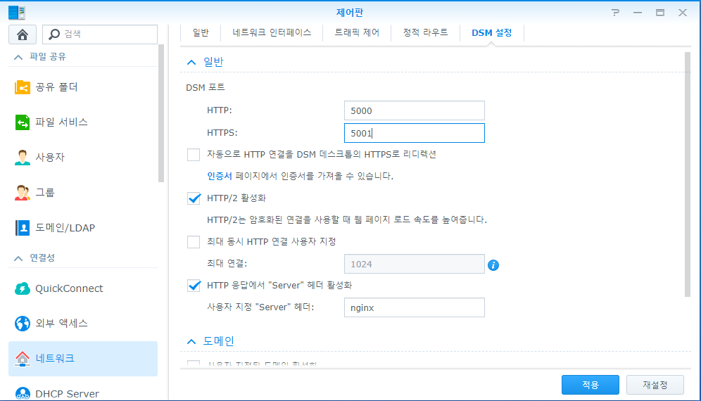 시놀로지 NAS의 무료 도메인 생성 방법