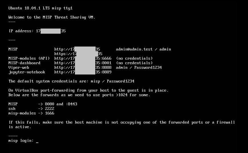 해당 데모는 Docker 이미지가 아닌 CIRCL이 제공하는 VMimage를 사용하였다.