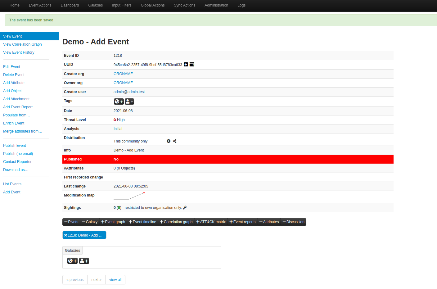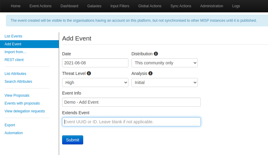 - 구글링 해보면 MISP의 Demo 자료는 거의 없다.