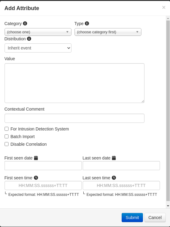 이벤트에 관련 위협 지표인 Attribute를 추가한다.