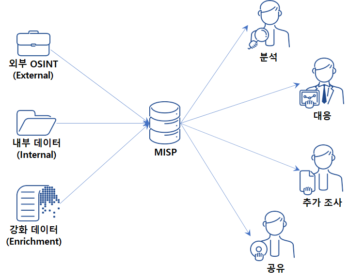 외부/내부 정보와 보강 정보 기반으로 분석, 대응, 추가 조사, 지표 공유가 가능하다.