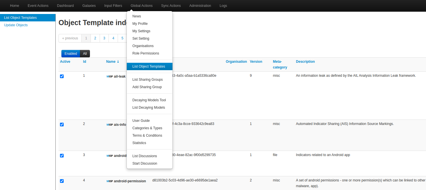 Global Action → List Object Templates → Update Objects