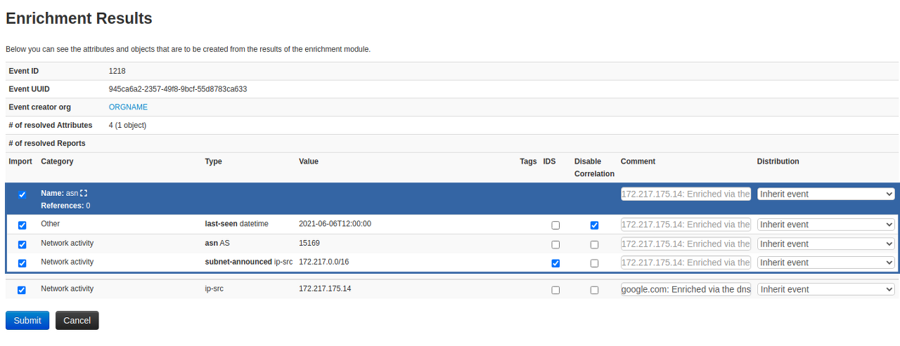 예제에서는 domain으로 생성한 보강 지표인 IP에 대해 추가 보강 지표 (ipsan) 생성을 진행한다.