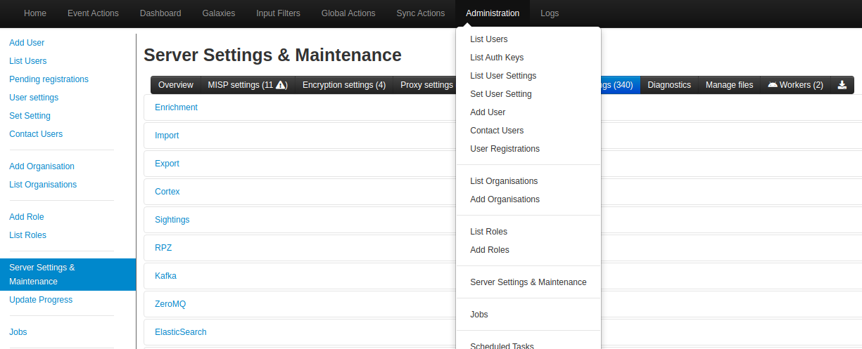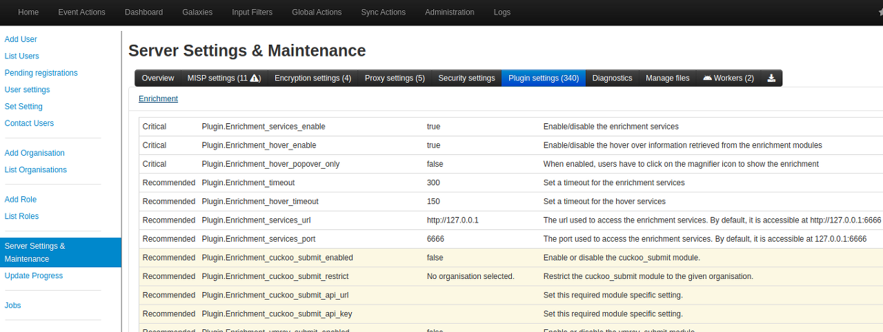 Server setting and maintenance → Plugin settings → Enrichment로 이동한다.