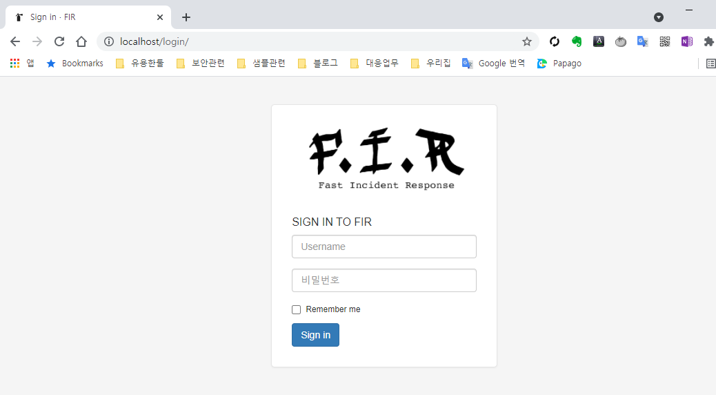 실행이 완료되면 웹 브라우저를 실행하고 http://localhost로 이동하면 다음과 같은 로그인 창을 확인할 수 있다.