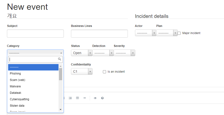 개요 우측이 아래 내용이 추가 된다. (Actor, Plan) Major Incident를 누르면 주요 사고로 지정 가능하다.