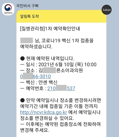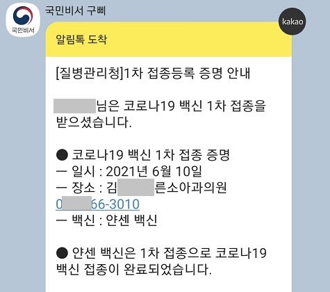 접종을 마치고 나오니 국민비서 구삐가 접종 완료 안내 문자를 보내주었습니다.