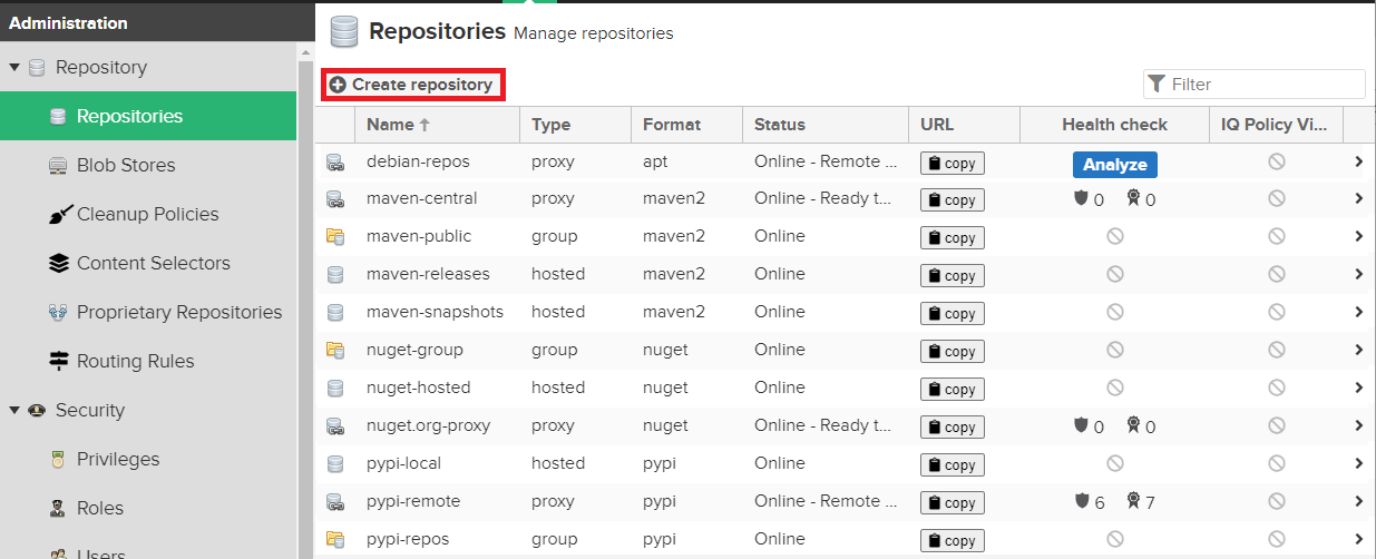 참고로 Conda 저장소는 proxy만 제공하고 hosted와 group은 제공하지 않는다.