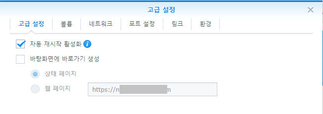 - NAS가 재부팅되거나, Docker 컨테이너가 비정상 종료 했을때 자동으로 재시작한다.