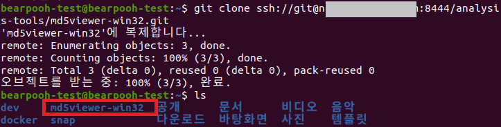 위의 과정을 마치고 다시 SSH 프로토콜을 사용한 git clone을 시도하면 성공적으로 진행된다.