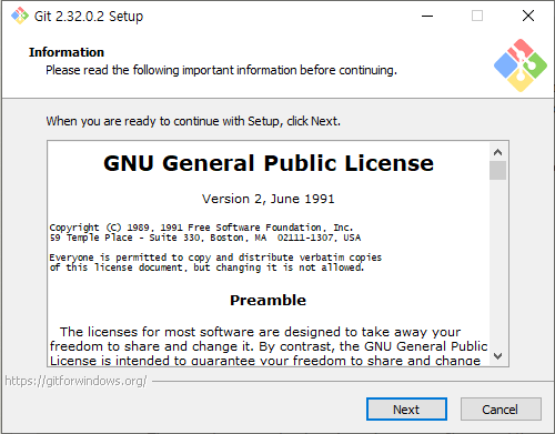다운로드한 설치 파일을 실행한다. GNU GPL 라이선스 동의 페이지에서 Next를 클릭한다.