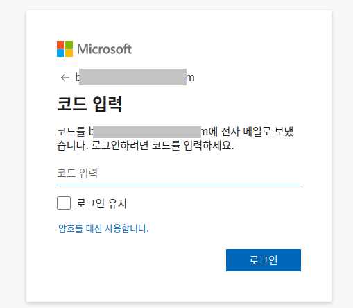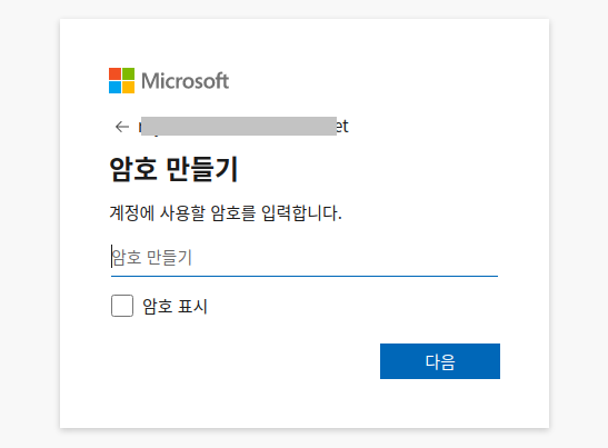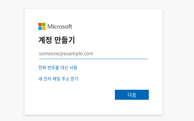이메일 주소가 이미 Microsoft에 있는 경우 아래와 같은 화면이 출력된다.