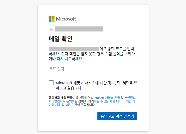 이메일 주소가 이미 Microsoft에 있는 경우 아래와 같은 화면이 출력된다.