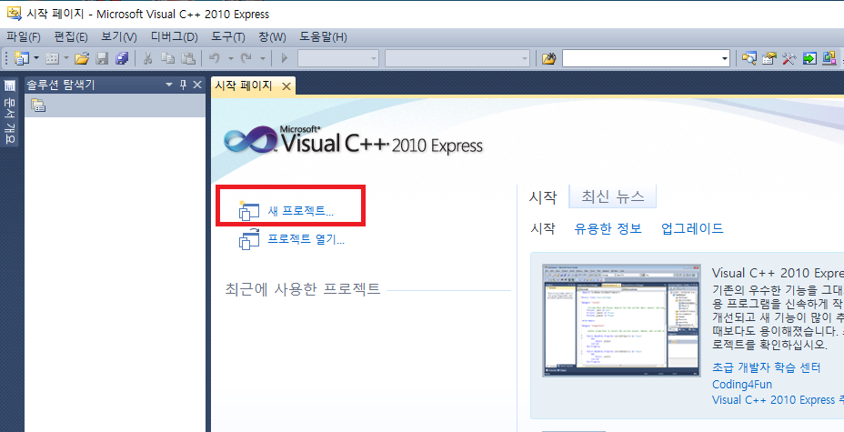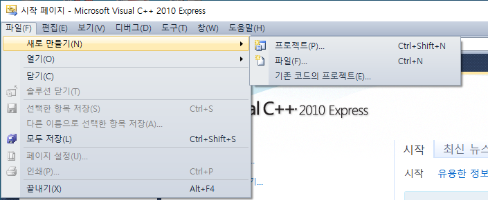 Miscosoft Visual C++ 2010 Express를 클릭해서 실행한다.