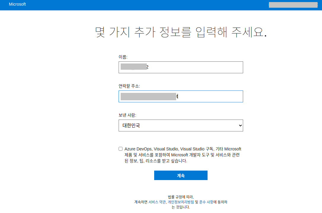 '동의하고 계정 만들기' 버튼을 누르면 계정이 생성된다.