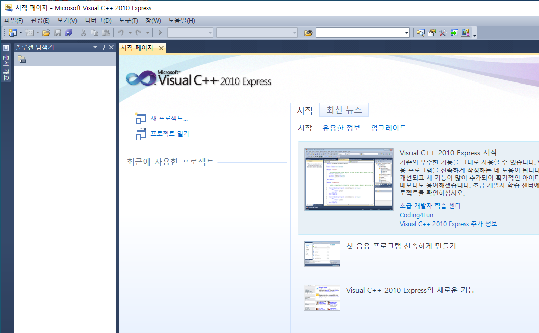 Microsoft Visual C++ 2010 Express가 정상적으로 실행되었다.