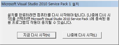 재부팅 여부를 묻는 창이 발생하는데 '지금 다시 시작(N)'을 클릭한다.
