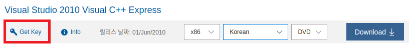 2. Microsoft 사이트에 무료 가입하면 Visual Studio Express 2010 시디키를 받을 수 있다. 무료로 정품 사용이 가능하다.
