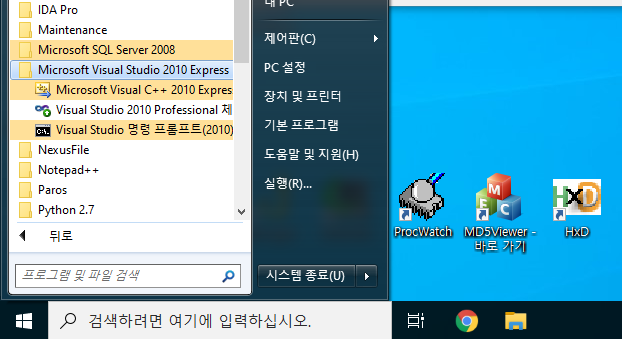 시작 버튼을 누르고 Microsoft Visual Studio 2010 Express 폴더를 선택하면 설치 된 것을 확인할 수 있다.