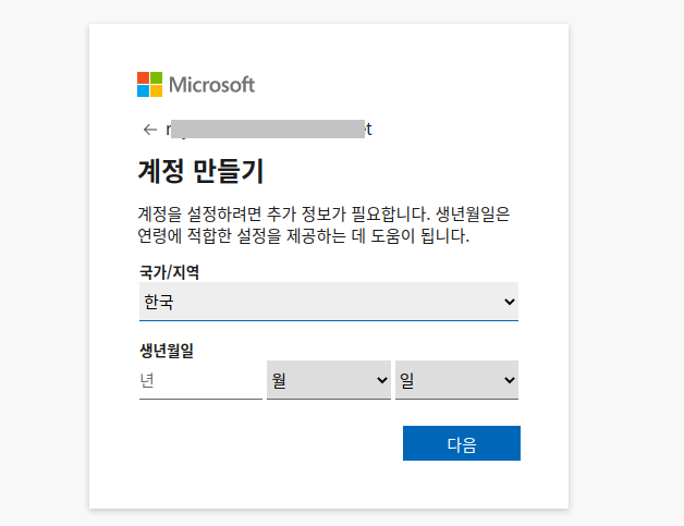 사용할 이메일 주소를 입력하고 다음 버튼을 클릭한다.