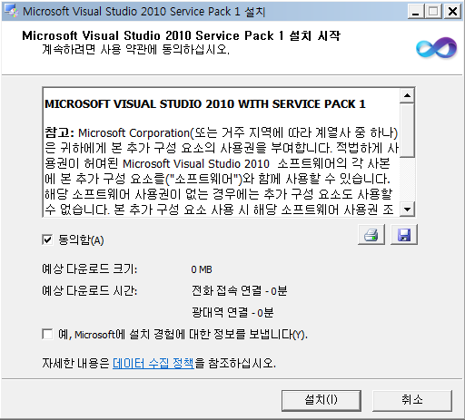 Silverlight와 MS SQL Server 서비스팩 설치 옵션이다. 필요하지 않으면 체크 해제한다.