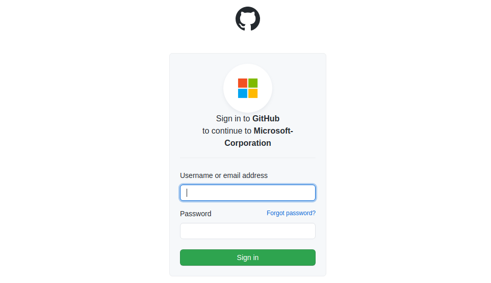 2018년 6월에 Microsoft가 GitHub을 인수했다. 따라서 GitHub 계정으로 로그인이 가능하다.