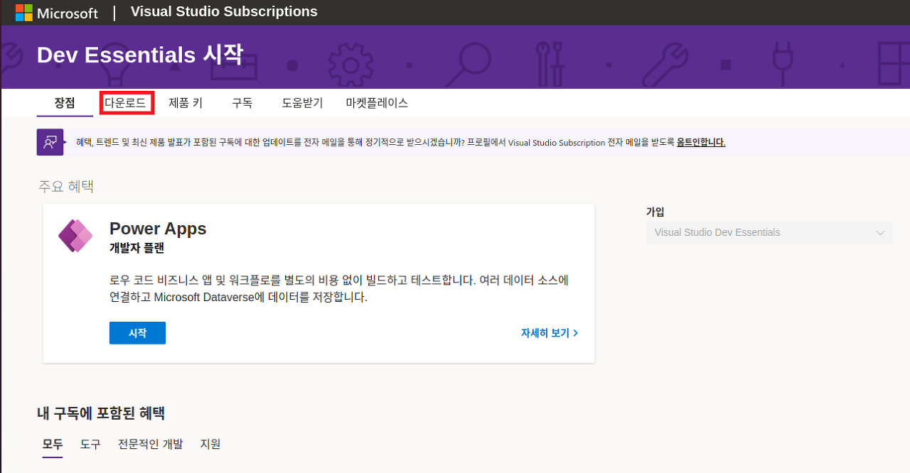 계정 생성이 완료되면 자동 로그인 되어 MSDN 초기 페이지로 이동한다.