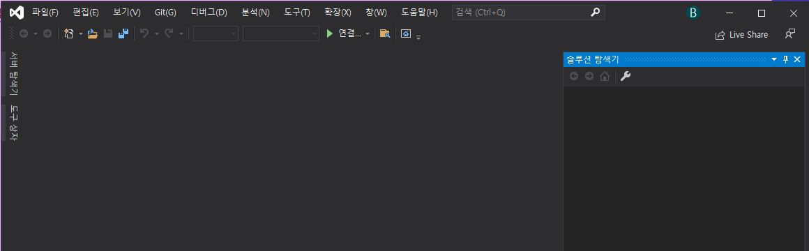정상적으로 Visual Studio Community 2019가 실행된 것을 확인할 수 있다.