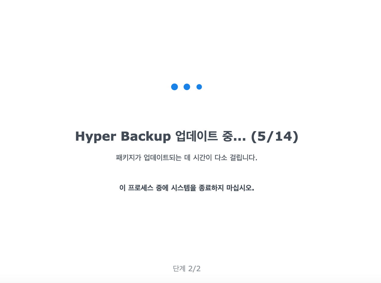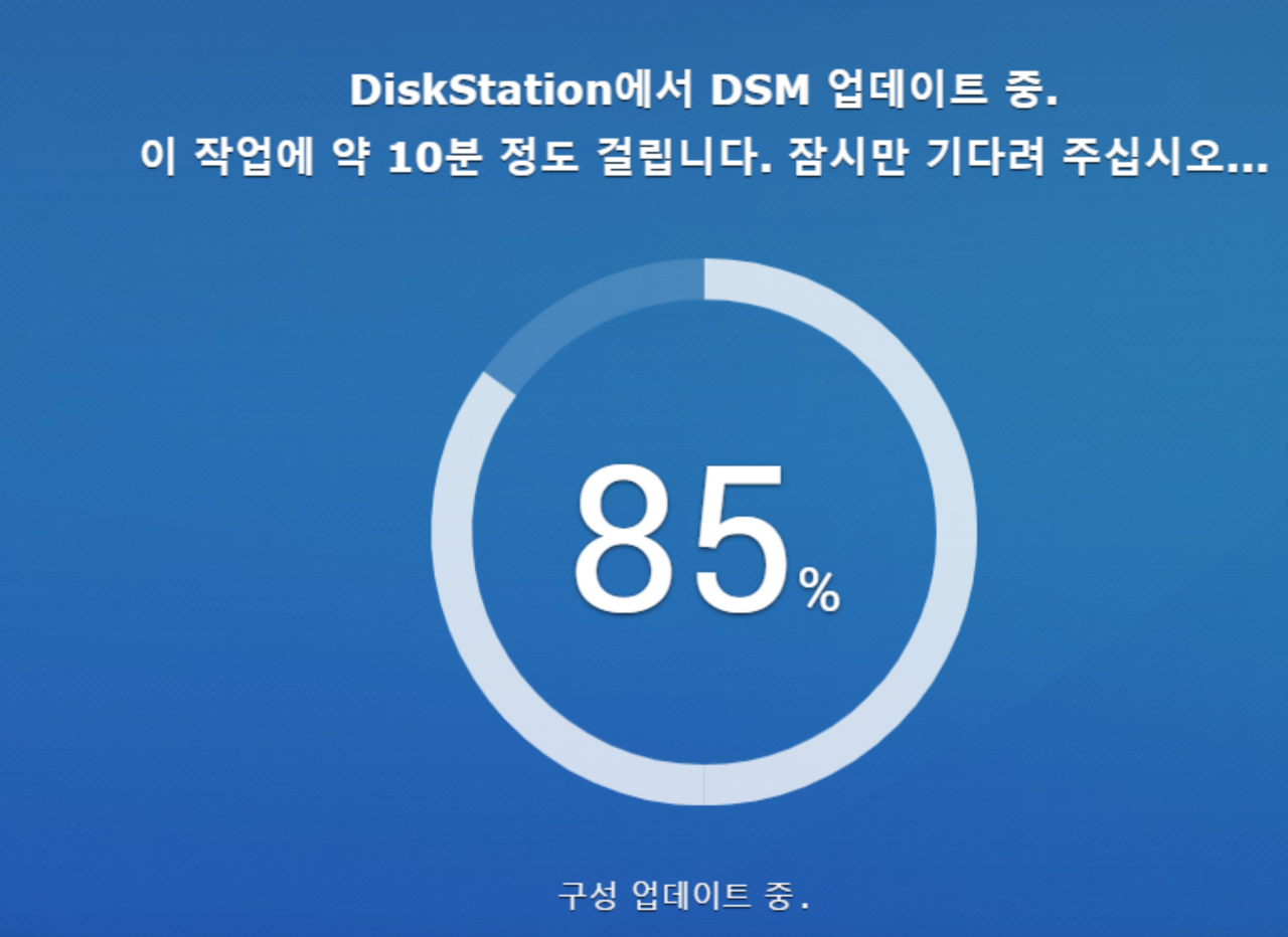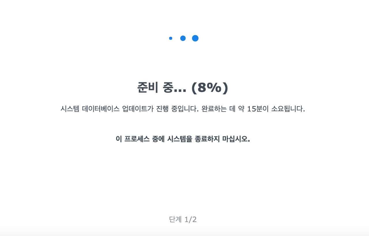 1/2단계가 끝나면 DSM 업데이트가 진행된다. 기존에 보던 DSM 업데이트 화면이다.