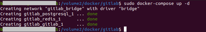 - gitlab 폴더이므로 gitlab_posgresql_1, gitlab_redis_1, gitlab_gitlab_1 형태로 컨테이너 이름이 생성되었다.