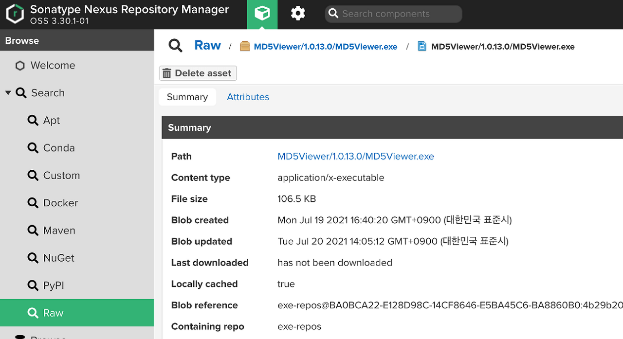 Nexus의 Raw Repository를 확인해보면 업로드 된 것을 확인할 수 있다.