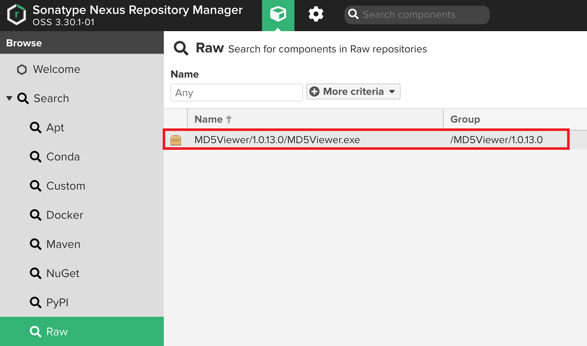 - 업로드 대상 경로에 프로젝트 이름과 버전을 지정하면 Group으로 지정된다. (MD5Viewer/1.0.13.0)